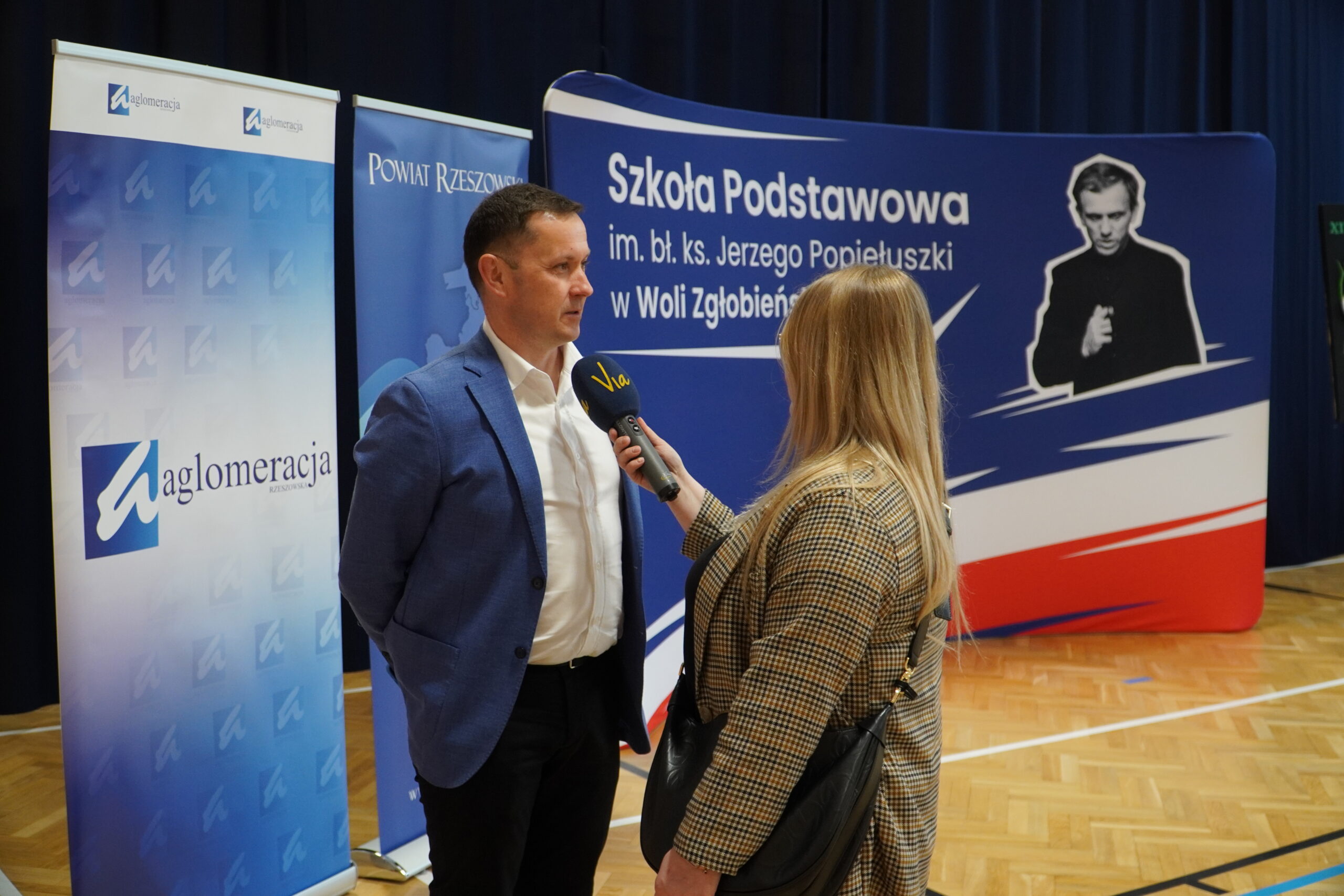 Szkołę Podstawową im. bł. ks. Jerzego Popiełuszki w Woli Zgłobieńskiej. Motto –