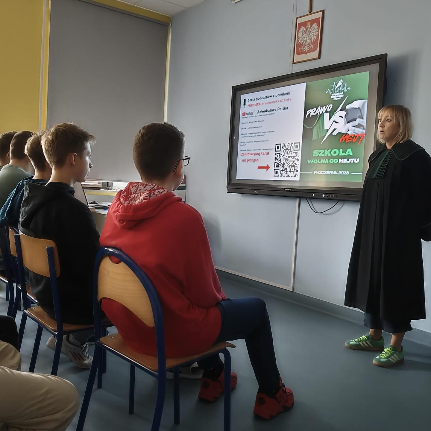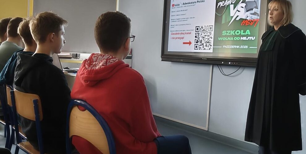 Tematem przewodnim była walka z mową nienawiści oraz edukacja prawna w kontekście hejtu w internecie i poza nim. To niezwykle istotna lekcja dla naszych uczniów, pomagająca zrozumieć prawne konsekwencje hejtu i uświadamiająca, jak budować przestrzeń wolną od nienawiści.