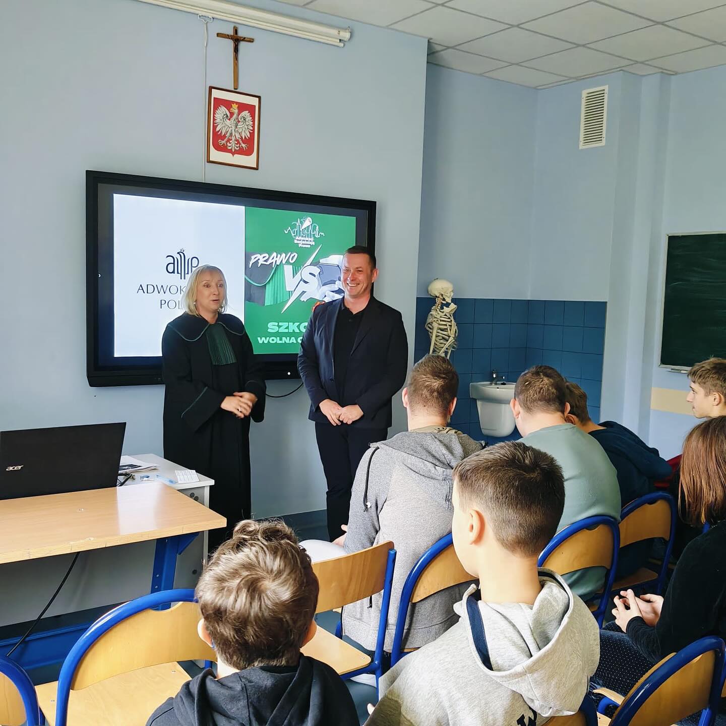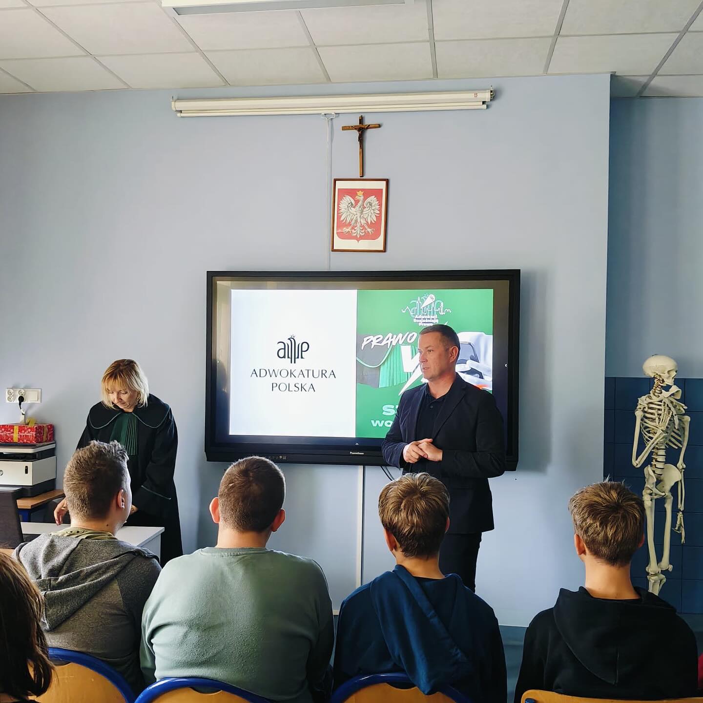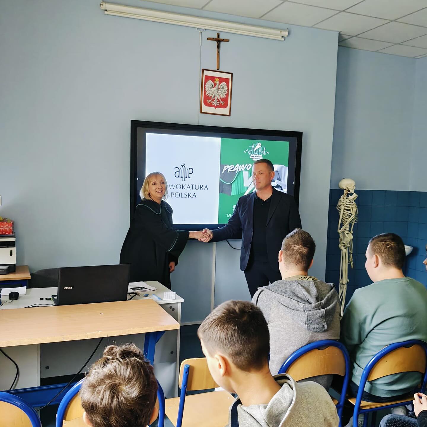 Dziś mieliśmy zaszczyt gościć Panią Mecenas Magdalenę Olczak-Lipską, która spotkała się z uczniami klas VII i VIII w ramach ogólnopolskiej inicjatywy Adwokatury Polskiej